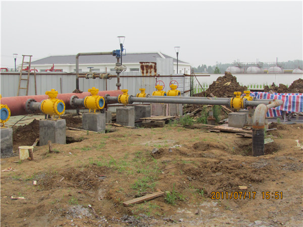 項目概況:本次工程設(shè)計范圍包括肥西輸氣首站(隸屬于肥西分輸站)、小廟分輸站、三座閥室、六安輸氣末站以及長度為71.7公里的輸氣管線。對于輸氣首站,只負責設(shè)計從預留口引出的工藝系統(tǒng),其余部分依托肥西分輸站;分輸站、末站包括站場的總圖、道路、工藝流程、工藝管道設(shè)備安裝、儀表自控、供配電、給排水與消防、建筑結(jié)構(gòu)、采暖通風、通信等諸多方面的設(shè)計。對于閥室,包括閥室的總圖、道路、工藝流程、工藝管道設(shè)備安裝、儀表自控、建筑結(jié)構(gòu)、通風、通信等諸多方面的設(shè)計。對于輸氣的長輸管道線路,包括管道選材、埋地敷設(shè),過公路、鐵路、水塘的穿越 ,管道的防腐、陰極保護、通信等的設(shè)計。設(shè)計管線輸氣量為4.0×108m3/a,管線作輸氣壓力為3.6MPa,在首站、分輸站、末站及三座閥室所配設(shè)備、閥門、管件設(shè)計壓力為4.0MPa、首站調(diào)壓前設(shè)計壓力為6.3 MPa,末站減壓后給下游各門站輸氣作壓力1.6MPa,此設(shè)計壓力為2.5MPa。